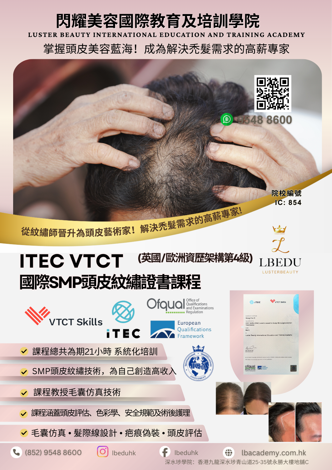 ITEC VTCT 國際SMP頭皮紋繡證書課程 (英國/歐洲資歷架構第4級)